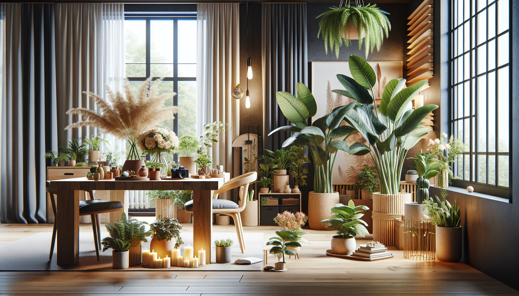 切り花と観葉植物を組み合わせた空間づくりの実践例