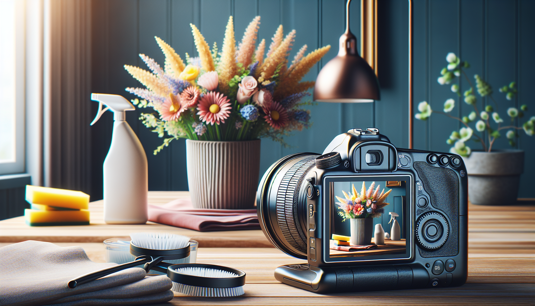 • 作業スペースの確保:ダイニングテーブルの一角に防水シートを敷き、花バサミと霧吹きを配置