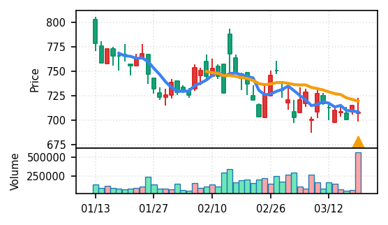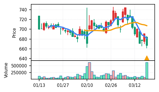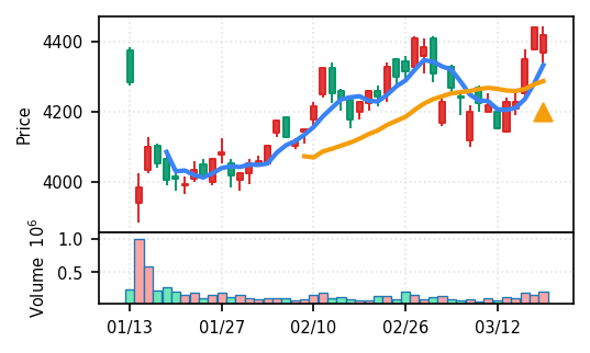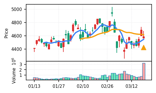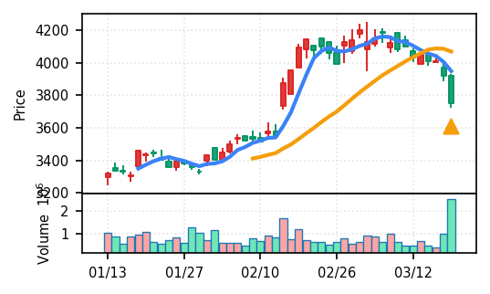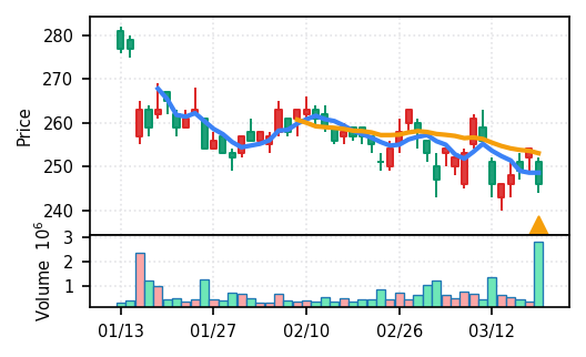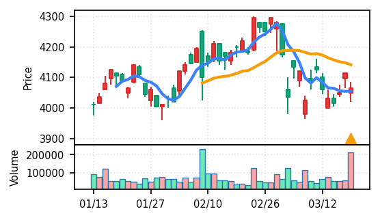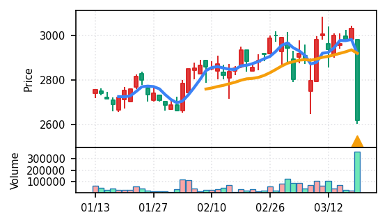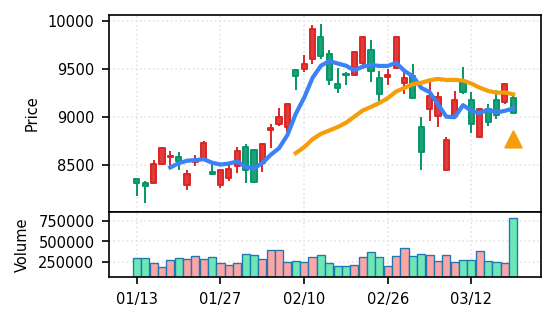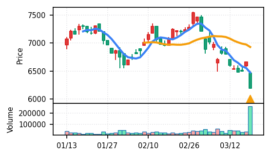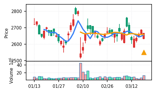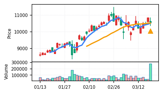 本日は出来高異変を示す銘柄(オークネット26.6σ、ライフネット生命39.5σ)が複数存在する一方で、上昇トレンド確認に至らない検知も多い。3月19日時点での市場心理は、初動段階での試り買いと確認待ちの段階が混在していると考えられる。
