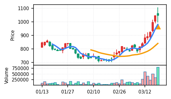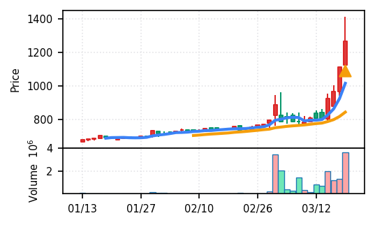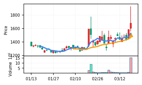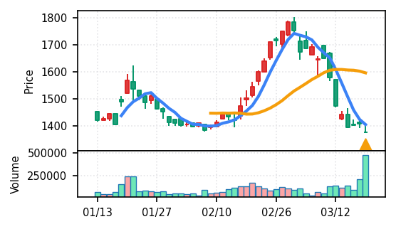 イーレックス(9517) [プライム/電気ガス業]は出来高1.1σと異変幅は小さいものの、引け足1.00(引け値が高値)、ブレイク✓・上昇トレンド✓の確認で、相場心理が強気に傾いている可能性が示唆される。