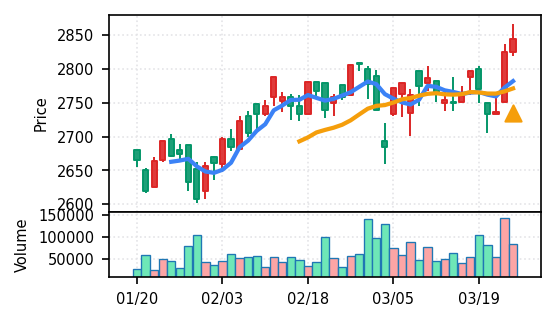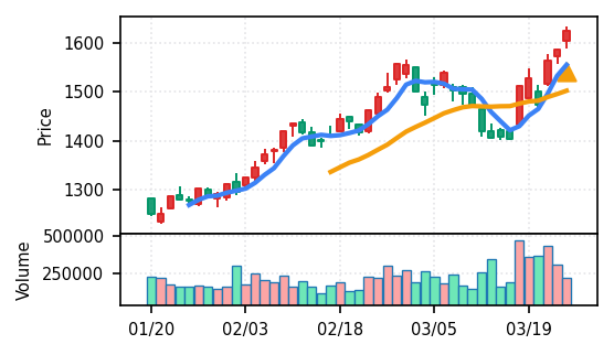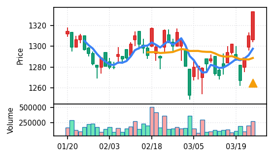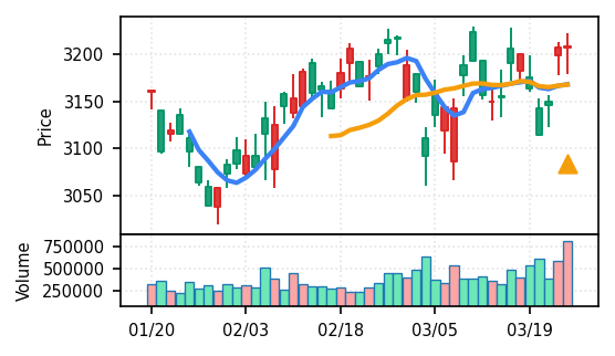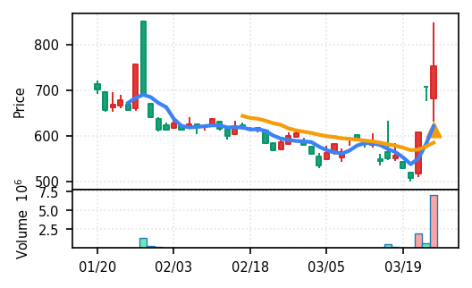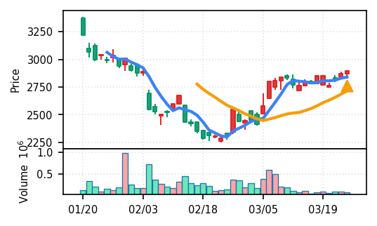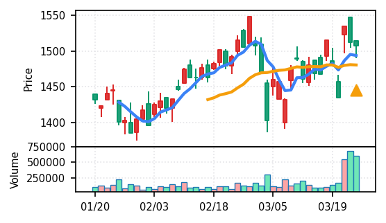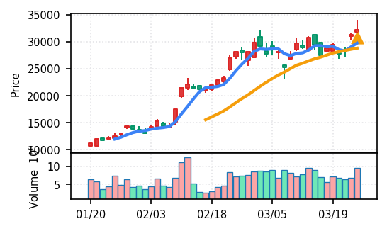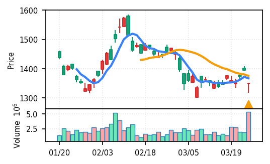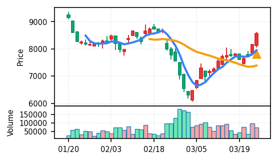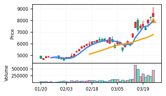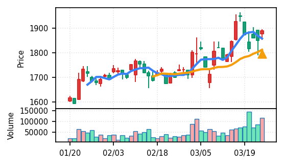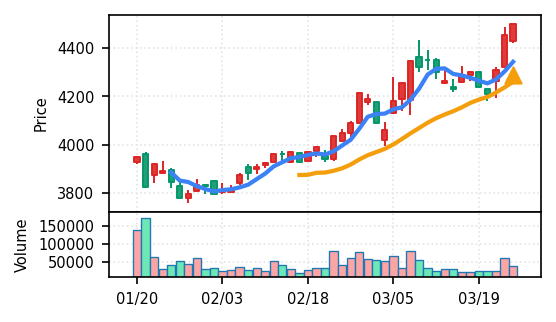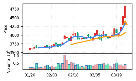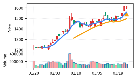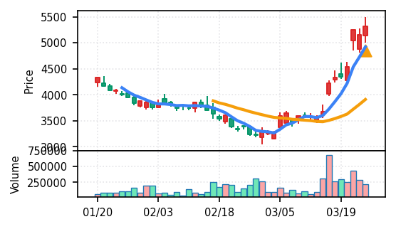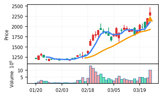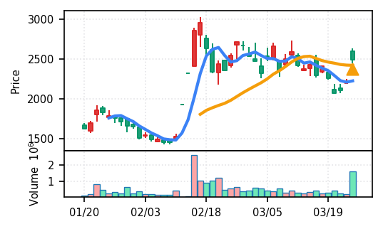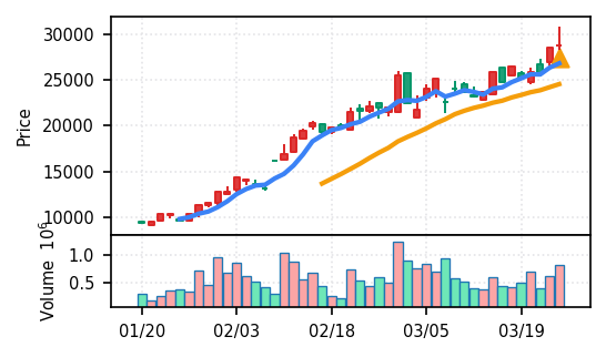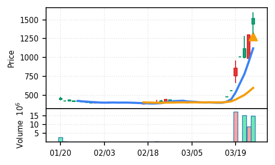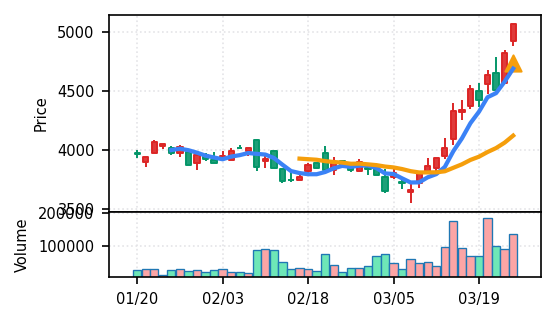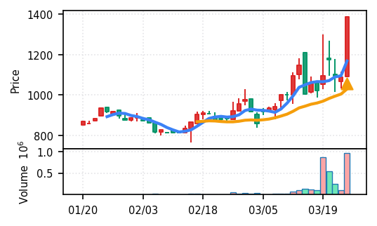 リファインバースグループ(7375) - スコア0.757。VolZ 3.9σと出来高異常は控えめだが、完全な上昇トレンド確認(引け足1.00)により、継続力の高さが窺える。