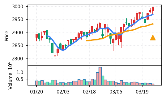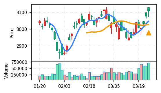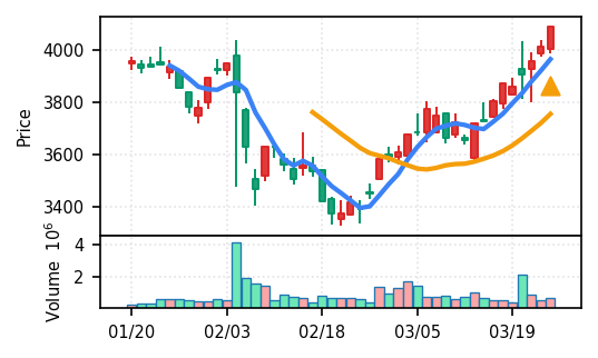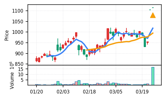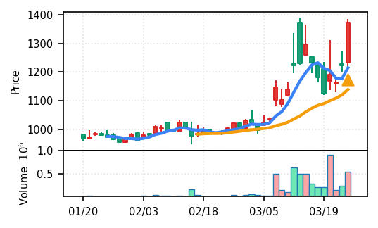 ソラスト(6197) - スコア0.933で本日のトップ。VolZ 20.1σの異常出来高とブレイク、上昇トレンド確認。引け足0.67と安定した引け。高齢化関連のサービス業として需要環境に支えられた動きと観察される。