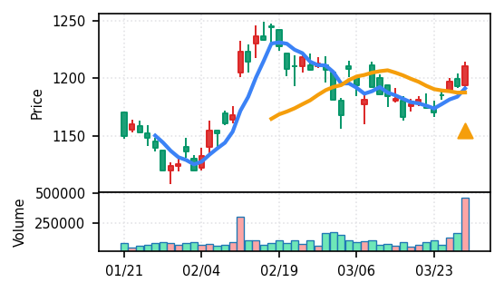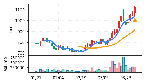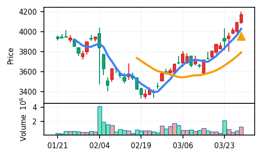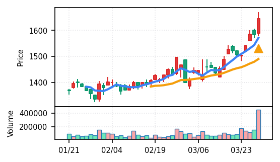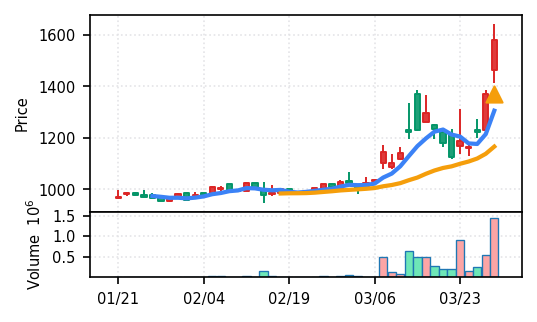 本日の検知全体が「天井形成の前兆」か「中期上昇トレンドの序盤」かは、出来高と引け値の推移で判定が分かれる局面。翌日以降の市場参加者の反応が、初動の本質を明らかにする。