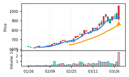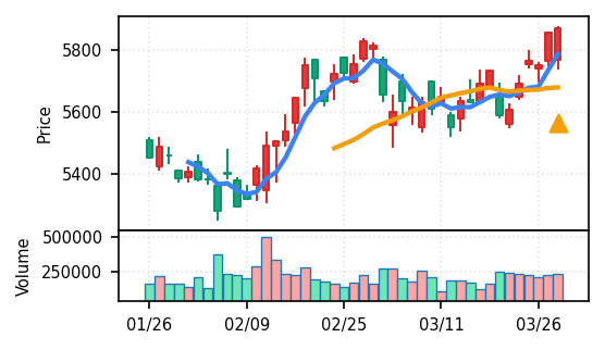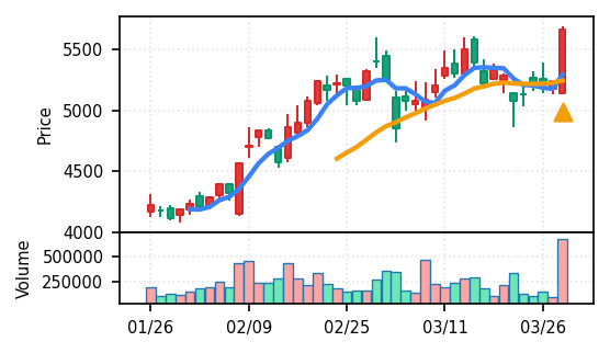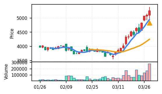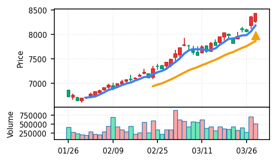 本日検知された50銘柄の大半が上昇トレンド確認・ブレイク達成となっているため、翌営業日の動きは「継続」「調整」「反落」の三パターンが想定される。特に: