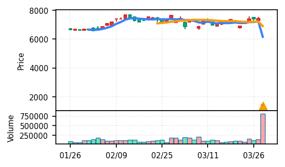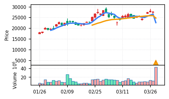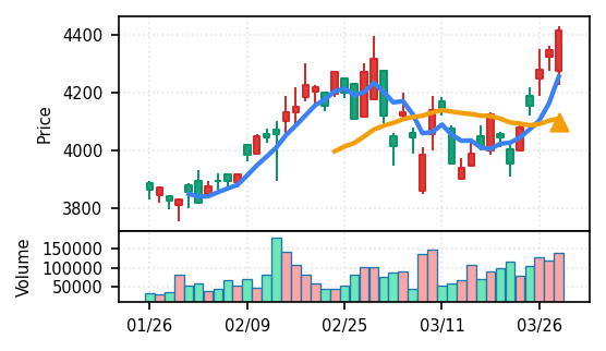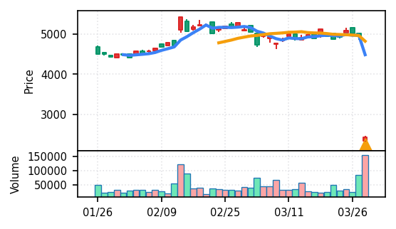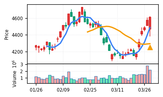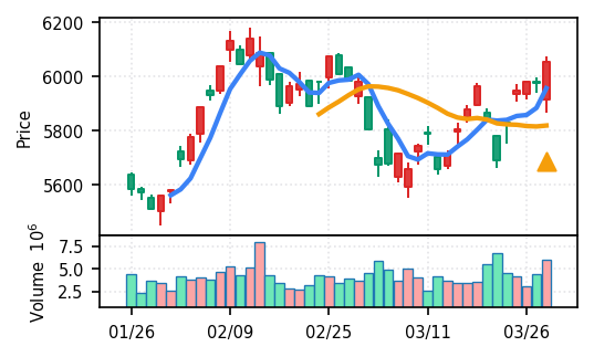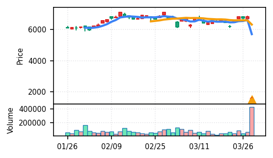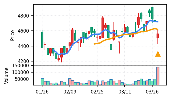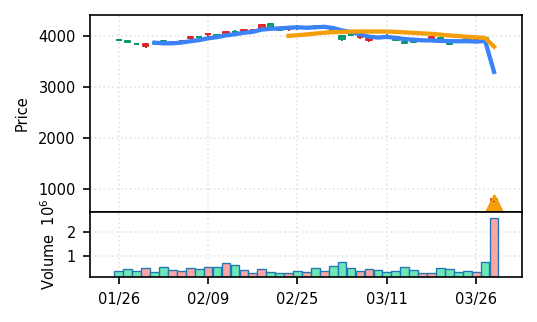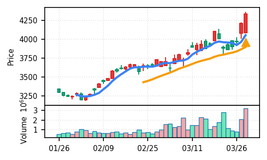 - 出来高Zスコアの高さ:ブルーゾーンホールディングス(417A)19.8σ、あいちフィナンシャルグループ16.8σなど異常な出来高は、その後の調整局面につながりやすい。押し目の形成を見守る局面。
