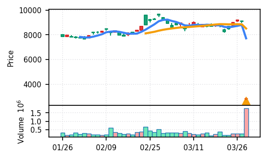 銀行業:金融機関特有の決算期直前のポジション調整、あるいは金利先行き見通しの好転による買い直しが進んでいる可能性がある。出来高Zスコアが15σ超の銘柄が複数あることから、機関投資家の仕掛けが疑われる。