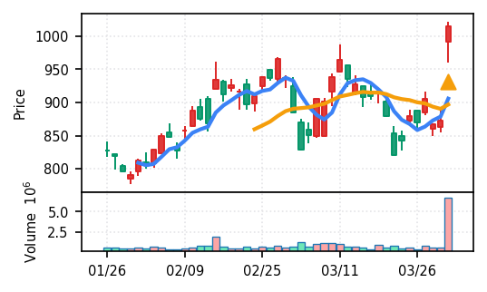 ポイントは、本日の広範ブレイクが「4月相場の本格始動」か「四半期初日の技術的反発」かの判別。引け足1.00の銘柄が約30銘柄と多数派である点は、売り圧力が軽いことを示すが、同時に初日だけの現象である可能性も排除できない。