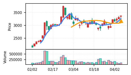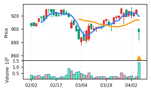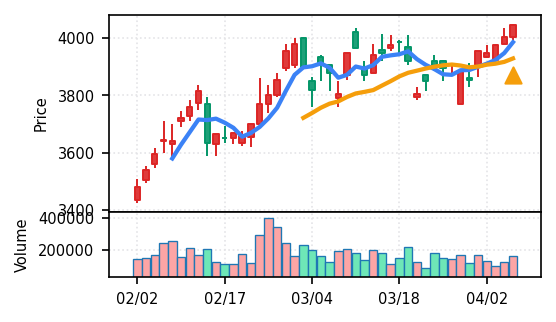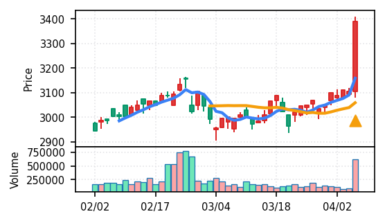 THEグローバル社(3271) はスコア0.900で第2位。不動産セクターからの異色検知であり、27.7σの異常出来高が特徴的。中堅物件運営銘柄としては希有の大型買い評価と考えられる。