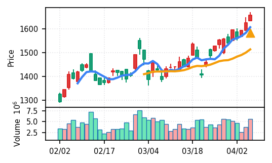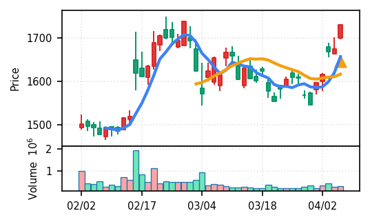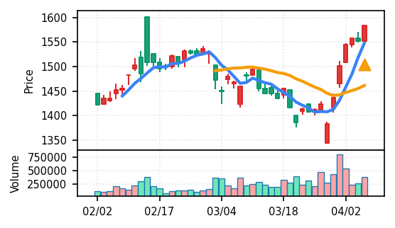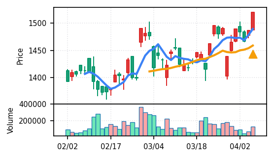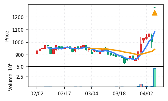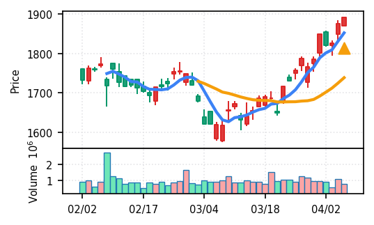 壱番屋(7630) はスコア0.605で9.2σの異常出来高を記録。評価値1000円未満の小型株ながら初動強気相場の拾い人気を集めた好例。