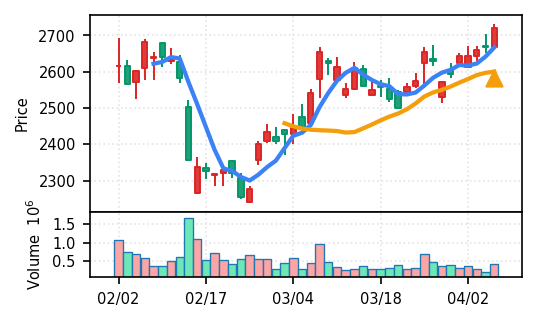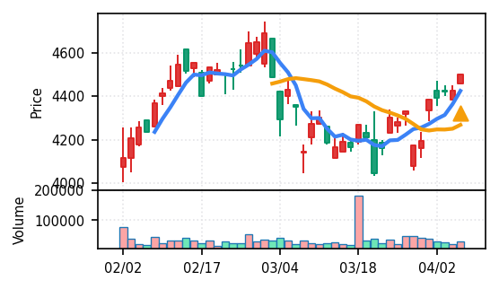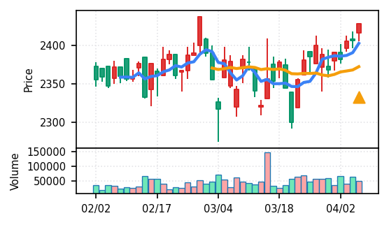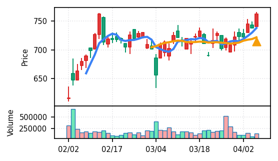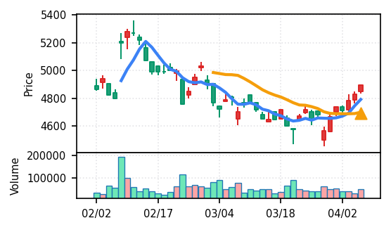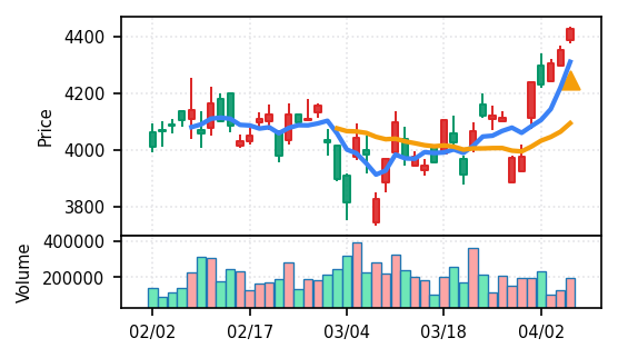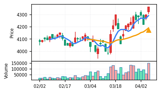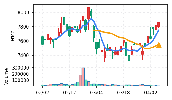 スコア0.7台の クリエイトSDホールディングス(3148) と イオンファンタジー(4343) は、小売・サービス業内での相対強度が高い。両社ともブレイク+上昇トレンド+引け足0.8超で、短期買いフロー継続を疑わせない。