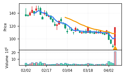 2026年4月7日の初動検知は、全50銘柄がブレイク条件を満たし、45銘柄以上で上昇トレンド確認と高い一貫性を示す相場環境となった。スコア0.6以上の濃密な検知密度と、49銘柄が引け足0.6以上でポジション保有継続の強い跡付けが観察される。出来高Zスコアは総じて低~中位にとどまり、個別材料主導の初動立ち上がりと推測される。