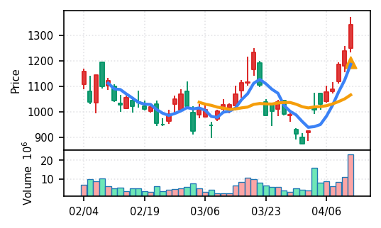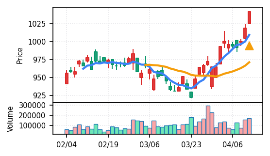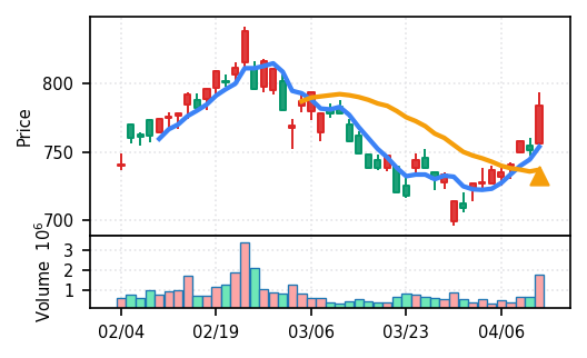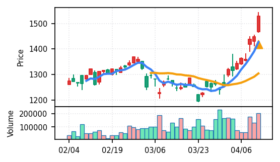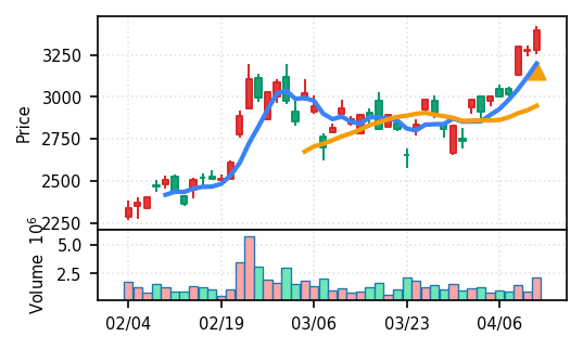 スコア0.911で引け足1.00。機械セクターながら出来高VolZは7.8σと適度に抑制されており、相対的に質の良い上昇を示唆。
