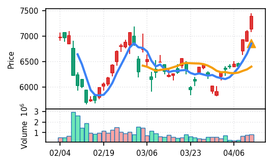スコア0.942、VolZ 16.4σ。機械セクター上位の強気指標。終値7160円でも出来高の集中度が高く、次日への値動き観察が重要。