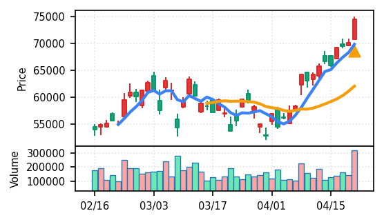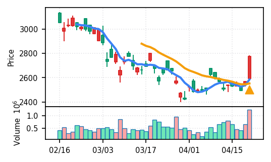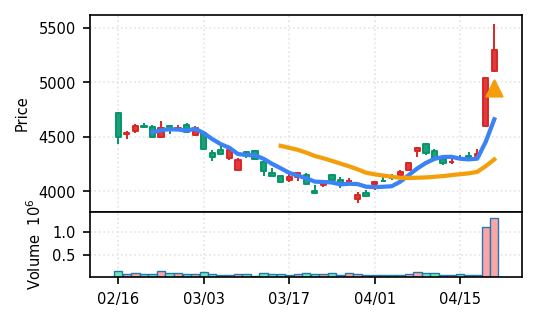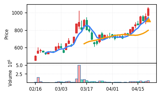 3位: アコム(8572) スコア0.912、引け足0.86。その他金融業からの検知銘柄で、金融再評価の流れを反映している可能性がある。出来高Zスコア8.5σは適度な水準。