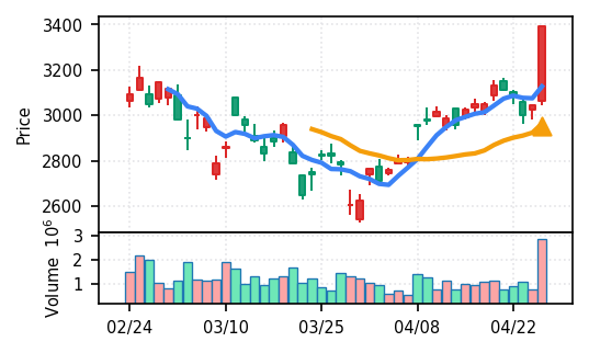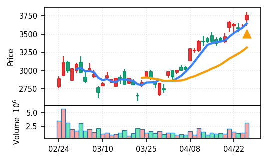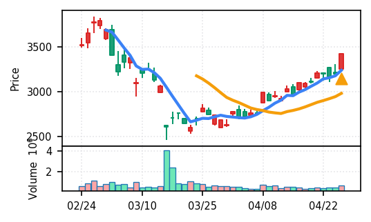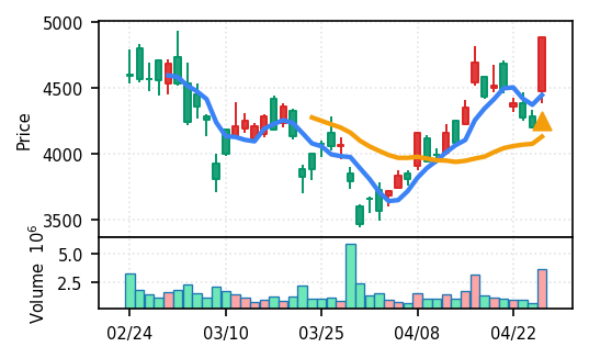 3位: 東京エレクトロン デバイス(2760) スコア0.931、VolZ 8.3σ、終値3620円 卸売業セクターながら高スコアで検知。電子部品関連の広がりを示す。引け足1.00で朝から終日上昇した形。