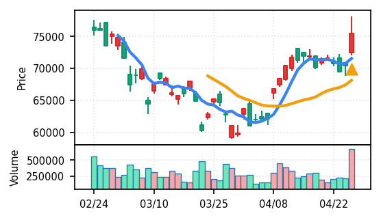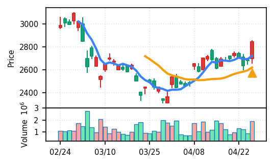 2位: ファナック(6954) スコア0.983、VolZ 9.6σ、終値7256円 電気機器の主力銘柄で、スコアが0.983と高値を更新。引け足が1.00(始値と同値)で、きれいな上昇トレンド継続を示唆。出来高も高く(9.6σ)、機械加工・ロボット関連の買い需要が強い。